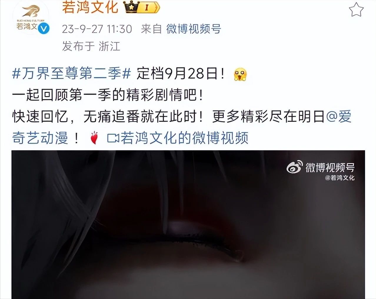 “《万界至尊》第二季定档9月28日!一起回顾第一季的精彩剧情吧!快速回忆,无痛追番就在此时!更多精彩尽在明日”