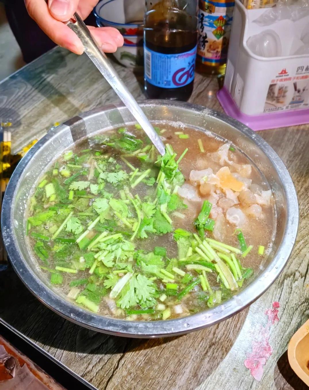 这家的焦点是牛筋、牛肚、百叶和牛蹄,再加上秘制的虾油老酒汤底,满满一大碗。