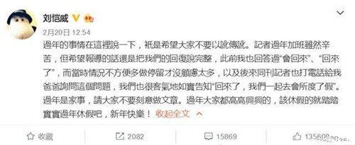 更让人引发猜忌的是,当有媒体问刘恺威:杨幂有没有回香港过年,他只是说了一句“新年快乐”,刘恺威父亲刘丹也是笑而不语,没有回应这个问题。不过刘恺威随后只是简单发微博:回来了,一起去会所度了假。没有提杨幂半个字,我就表示呵呵哒了!