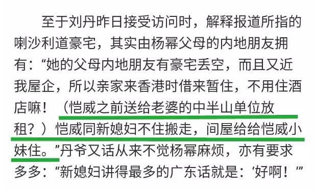还有不怕惹事的网友挖出旧新闻,原来杨幂结婚时候的婚房,现在已经被刘恺威妹妹住进去了。当时刘恺威父亲刘丹亲口说:刘恺威送给老婆杨幂的婚房给刘恺威小妹住了。杨幂父亲小林哥每次去香港看望小糯米,都是住在酒店里,不住杨幂的婚房。原来是这个原因!