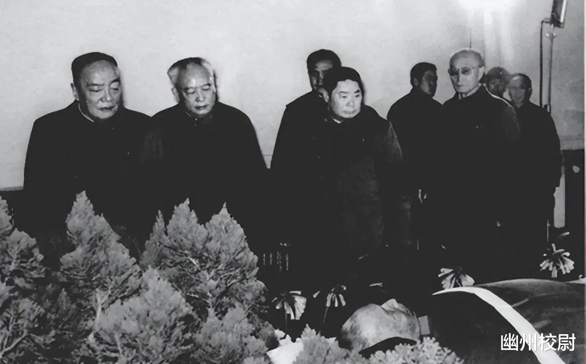 照片中,站在粟裕遗体前,左边第一位的,是杨尚昆同志。他低垂眼眸,凝视着粟裕的遗体,只为看粟裕最后一眼。