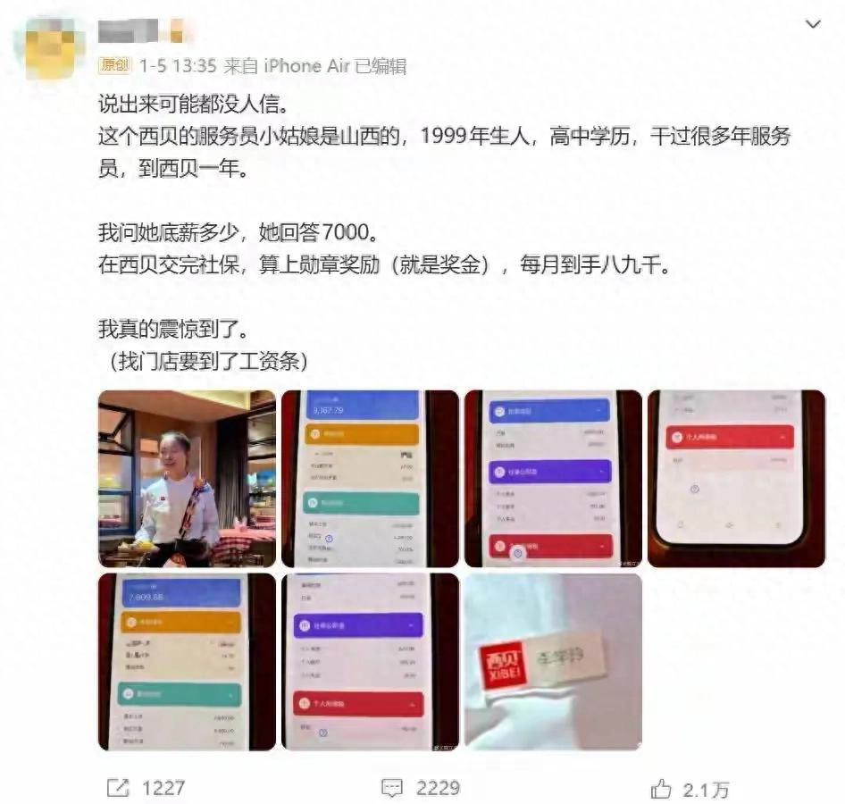 2026年初,一张西贝服务员的工资条在社交平台引发全民热议,“西贝服务员工资条”话题迅速登上微博热搜第五位,相关阅读量突破1751.2万。截图中,一名高中学历的服务员扣除社保公积金后实发9167.79元,未扣税前月薪更是高达11375元,而上海某门店“部长”级服务员的月薪资已达12507元,这样的收入水平让无数网友直呼“实名羡慕”,甚至调侃“坐办公室不如去西贝当服务员”。