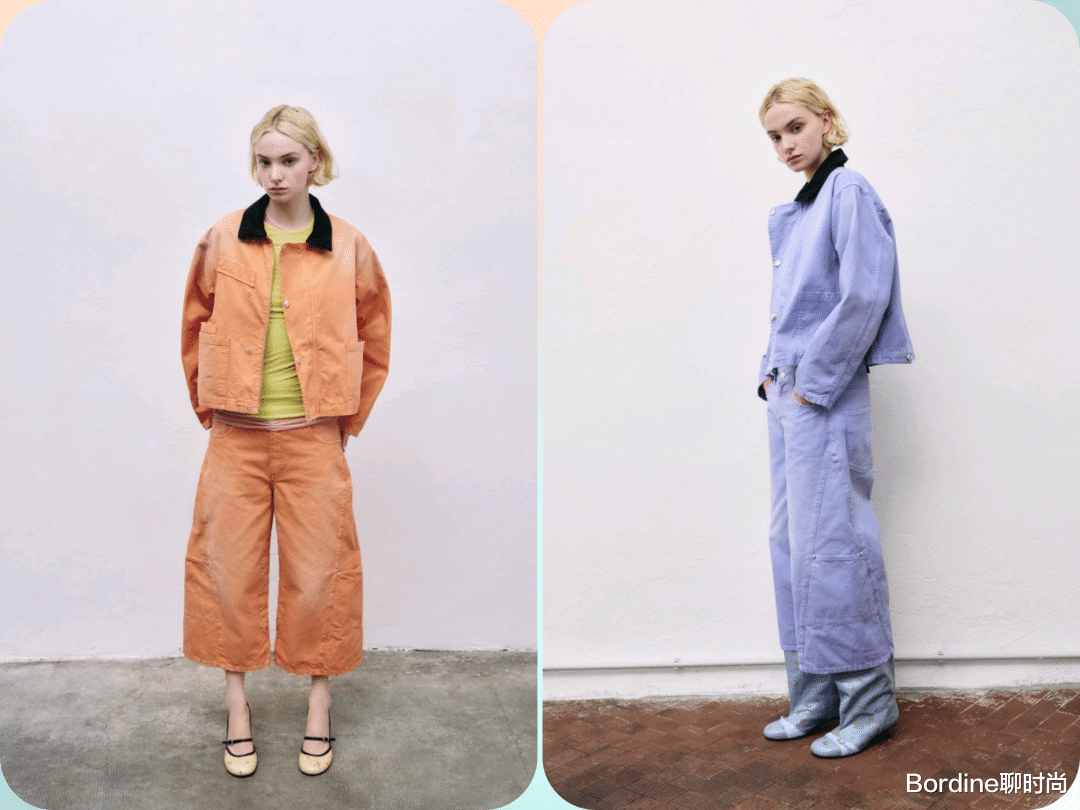 彩色颜色之间的对比搭配,在一些粉色、绿色等色彩之上,丰富的色彩带来了更为强烈的色彩冲击,在色彩的撞色冲击中也多了一些浪漫活力的气质,在夹克、西服等款式中气质利落大方。