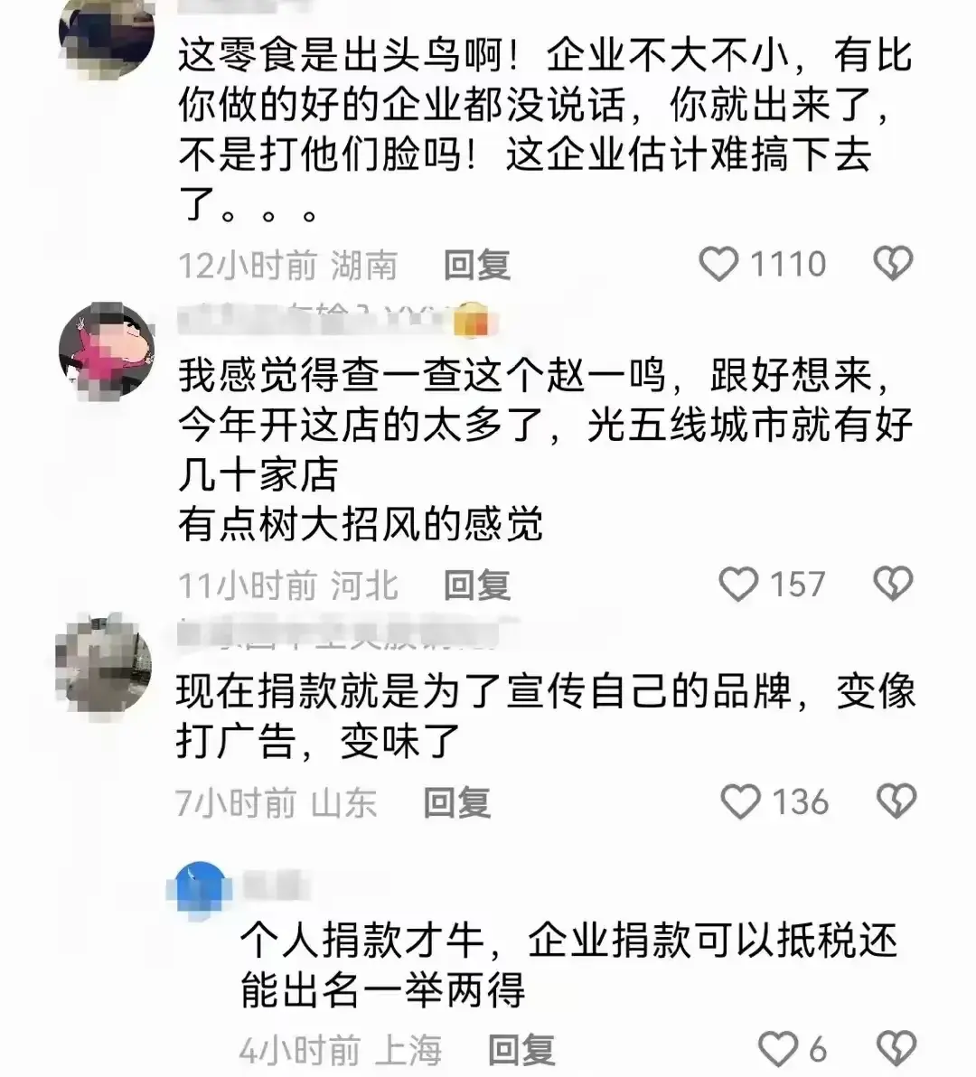 当然,网友们的想法颇为直接:赵一鸣零食捐出款项,既然有捐款的资金,为何不将其用于提升自家员工的福利待遇?