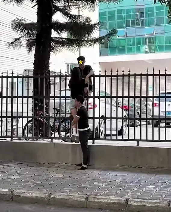 现场直击:他撑着爱人去拥抱别人视频里那场景真挺扎心的。穿白 T 恤的小哥蹲在栏杆这边,双手死死托着姑娘大腿,胳膊上青筋都爆出来了。姑娘呢?整个身子扑向栏杆另一边的男生,俩人鼻尖蹭着鼻尖说悄悄话,时不时还来个贴脸杀。最戳心的是小哥抬头看镜头时那苦笑,嘴角扯了扯又憋回去,活像被针扎了还得装没事的样子。