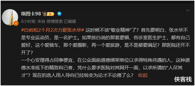 不过,网友们对白岩松力挺张水华的立场,呈现一边倒的反对和驳斥,最基本的看法,是对其它的医护人员不公平。