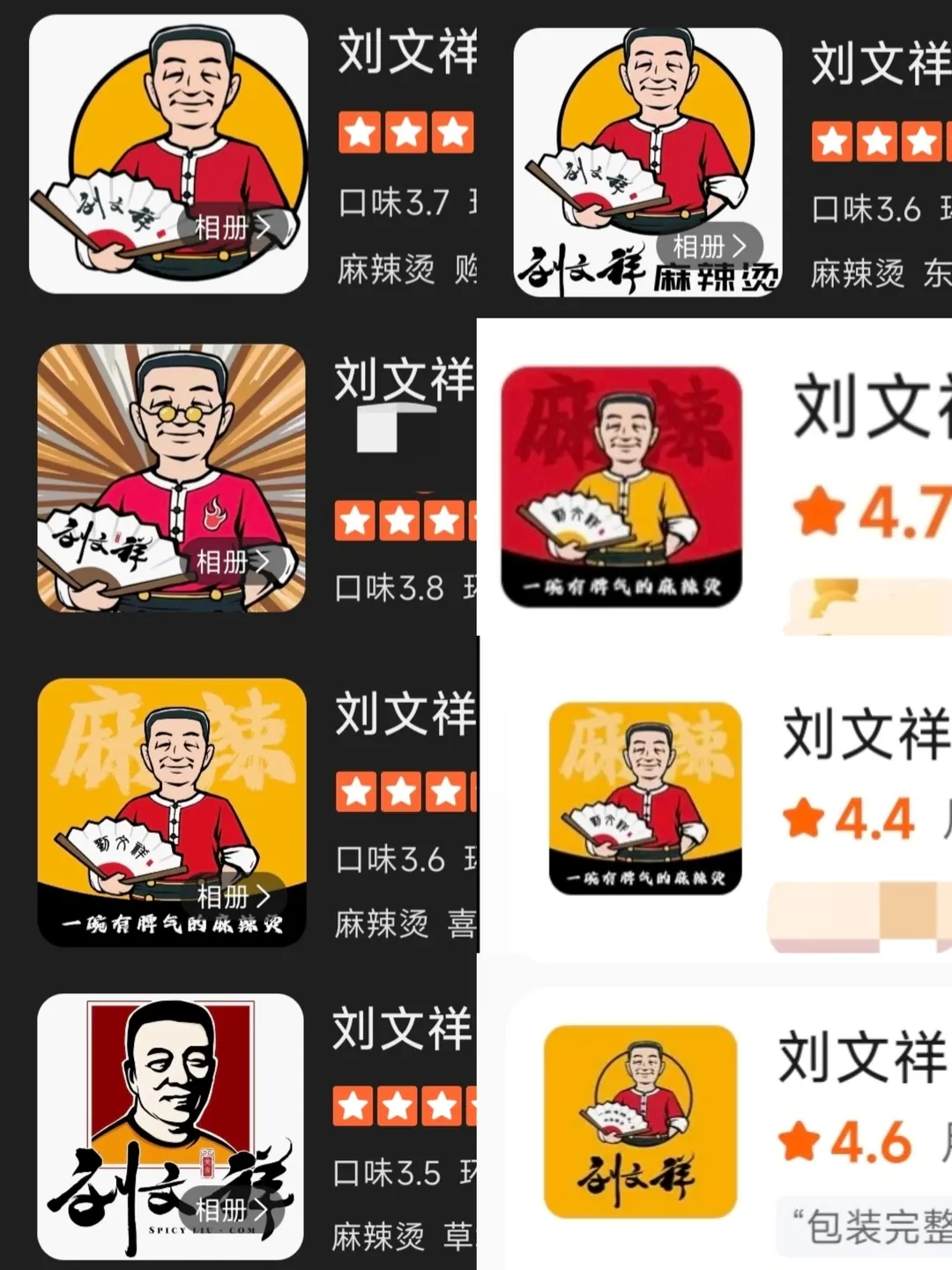 刘文祥在流量红利最猛烈的时候主动"踩刹车",其实是越来越多消费者发现,同样是“刘文祥”,你家楼下那家和我公司旁边那家不仅味道不一样,连门头都不一样,有“白底老头”和“摇扇子老头”,甚至摇扇子老头的背景也有黄有红略有差异,本想被治愈,不成想吃到盗版了!