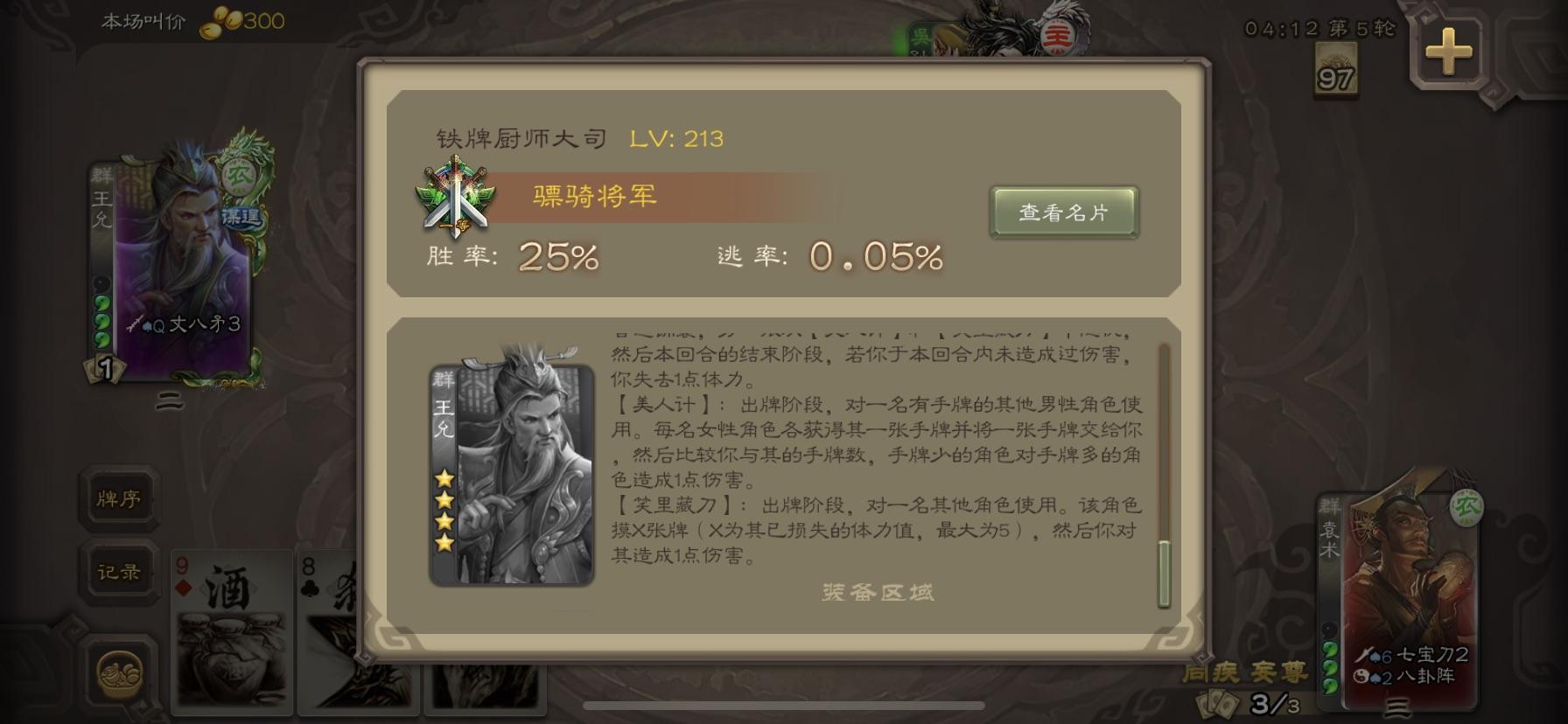 但每个武将总会有几把自己的刷子,不然就没有牌面了,而群雄王允靠的就是便是这三张独有的锦囊,只有我能使用,我死之后便随我陨落.