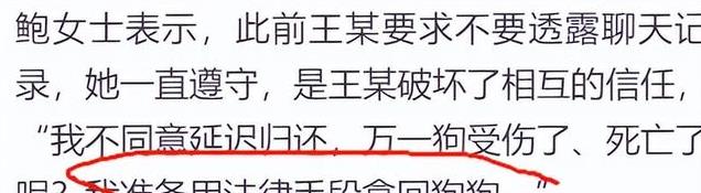 对于鲍女士强硬的态度,“老叔”却表示有个折中的办法,就是延迟还狗,就是等现在的网络热度下去,一两个月后自己将狗送回去。