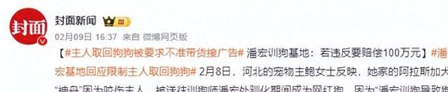 信息来源:“新闻晨报官方抖音号”——(主人取回狗狗被要求不准带货接广告,潘宏训狗基地:若违反要赔偿100万元。)