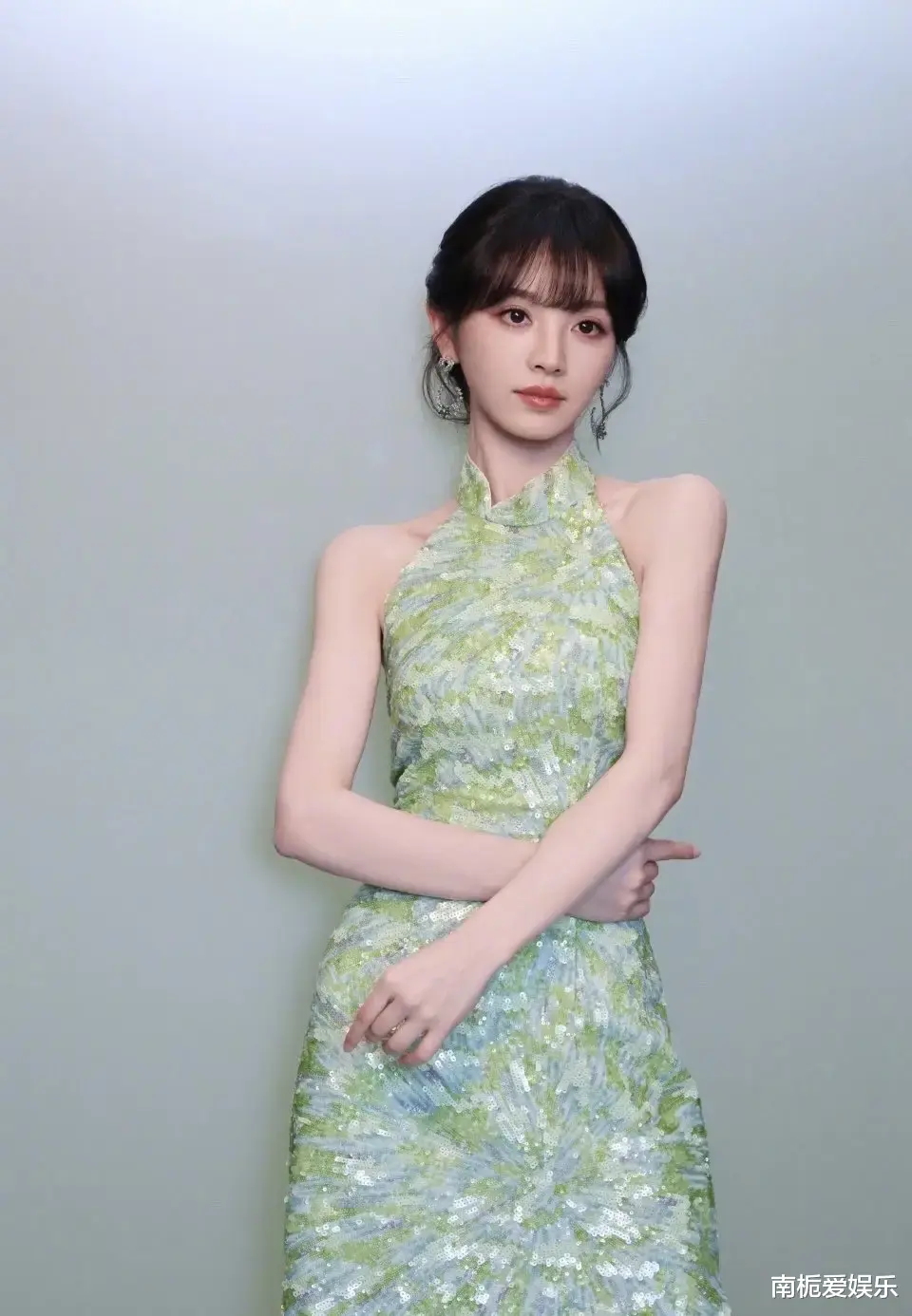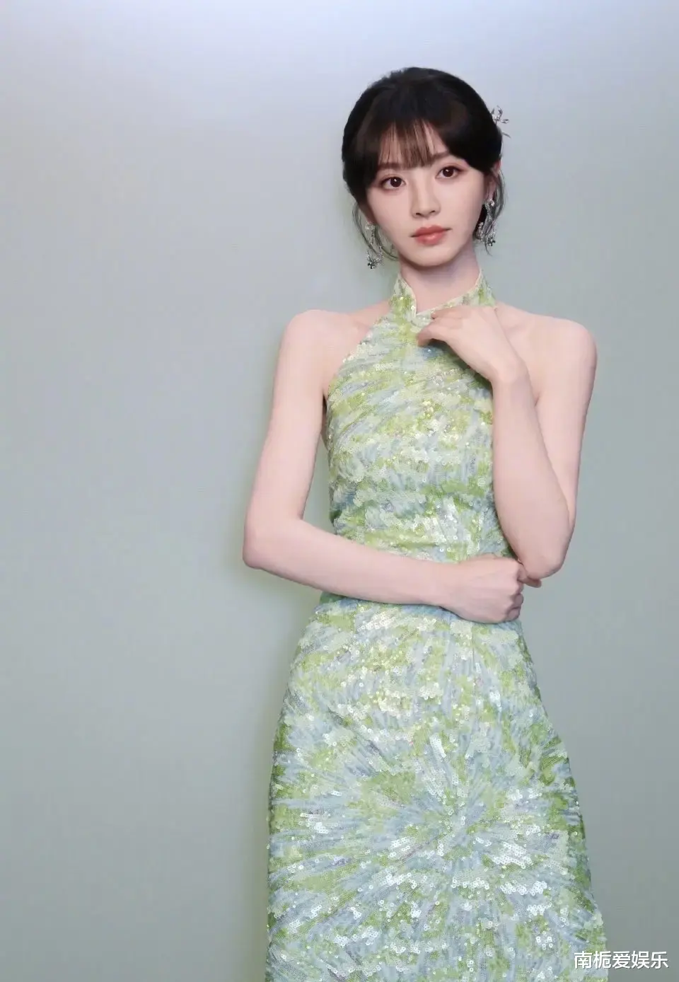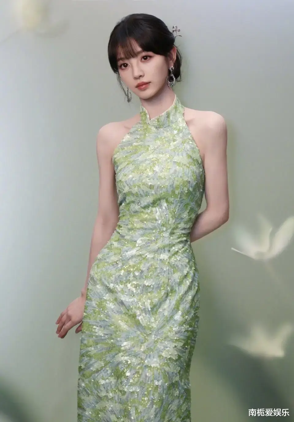 近期,田曦薇以一套翡翠绿亮片挂脖旗袍造型引爆全网热议,再度将“新中式美学”推上时尚风口。她身着高饱和度青提绿真丝旗袍,细密亮片在光影流转间折射出灵动光感,与她冷白肤色碰撞出强烈的视觉张力。挂脖剪裁大胆展露优越肩颈线条,将直角肩与纤细锁骨完美呈现,既具现代女性的自信张力,又不失东方含蓄之美,瞬间成为社交媒体热议焦点。