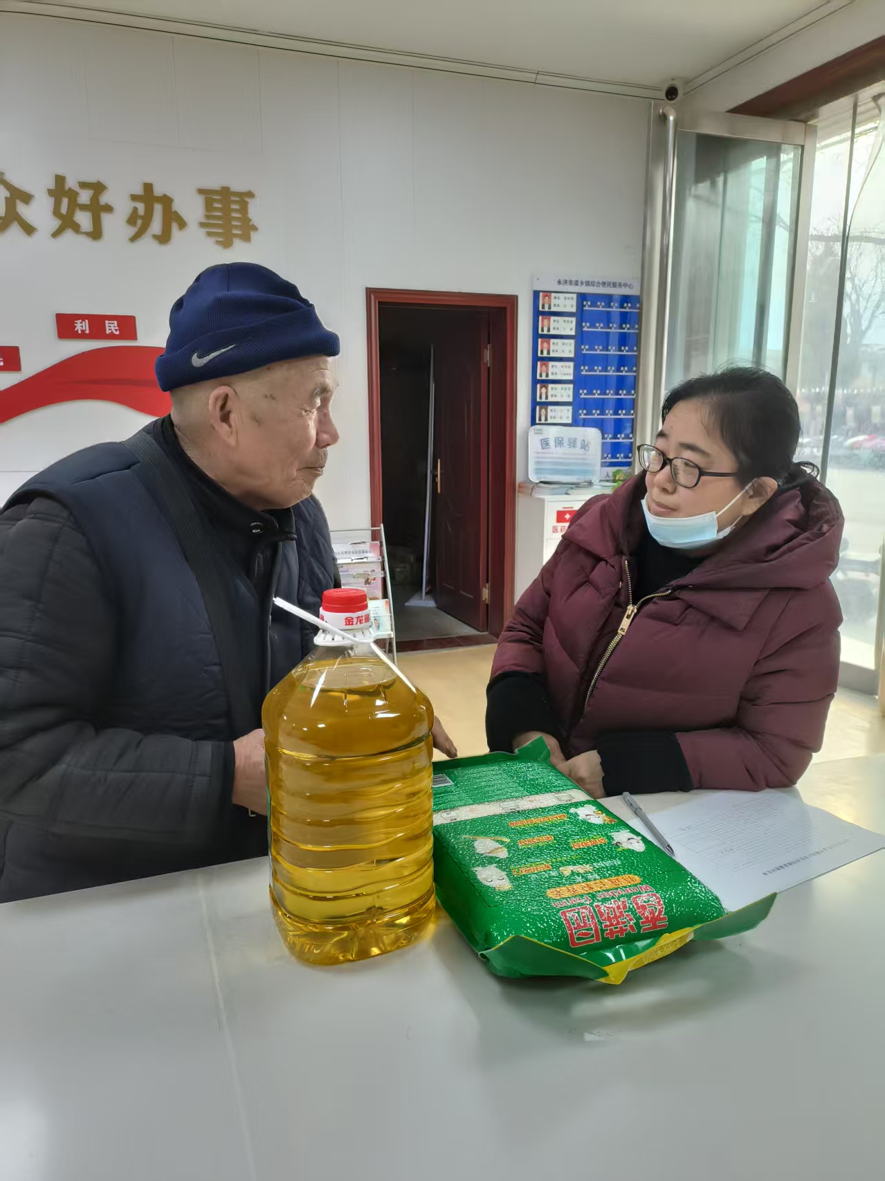 一行人深入辖区内计划生育特殊家庭,与群众亲切交流,详细询问他们的身体健康状况、政策保障落实等情况,耐心倾听他们在生活中遇到的困难与诉求,并鼓励他们保持乐观向上的生活心态,坚定面对生活的信心与勇气。慰问组为特殊家庭送上米、油等生活必需物资和节日祝福,将沉甸甸的关爱送到群众手中。
