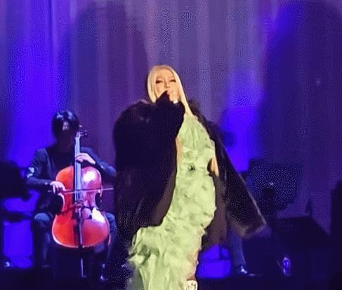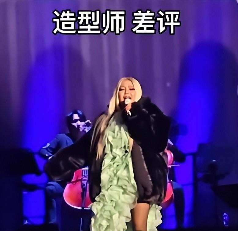 杭州演唱会,原本应该是阿妹和歌迷们的一次狂欢。想象一下,万人合唱,激情澎湃。可是,当阿妹身穿一件绿色纱裙,外搭一件皮草外套出现在舞台上时,现场的气氛似乎凝固了一瞬间。这套造型,用“灾难”来形容,似乎也不为过。绿色的纱裙,层层叠叠,臃肿不堪,再加上略显厚重的皮草,更显得整体造型十分笨拙。难怪有网友调侃说,像极了“大青虫”。