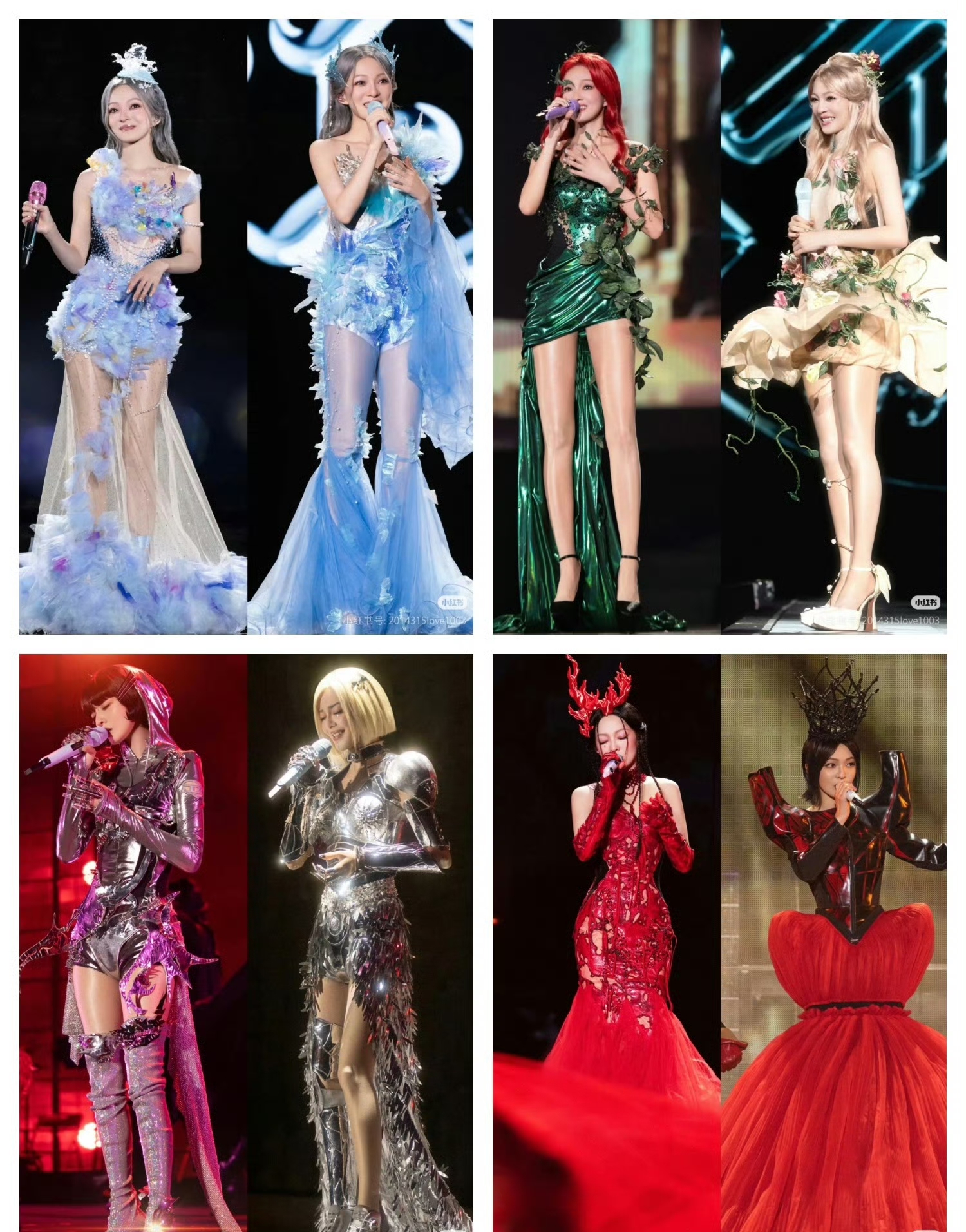 新团队的“翻车与逆袭”:从“钢丝球”到“非遗美人”初期争议:汕头站的“泡面头+钢丝球服饰”被嘲“显老20岁”,紫色渐变长发质感廉价像“蚁后”,同款礼服在老团队手下是精灵战袍,新团队却穿成“后妈风”,视觉与歌曲意境严重割裂;