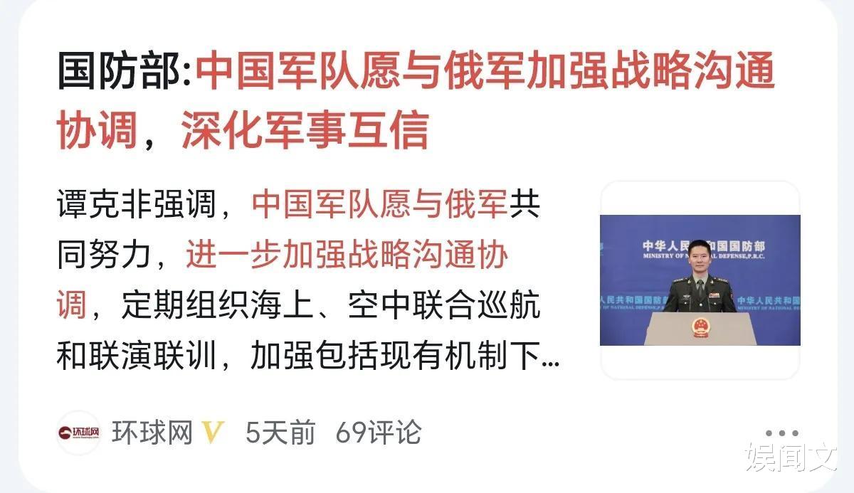 国防部的霸气发言,表明了一点:中俄加强合作,是世界之幸,安全之幸,和平之幸。中俄友谊,历久弥坚!