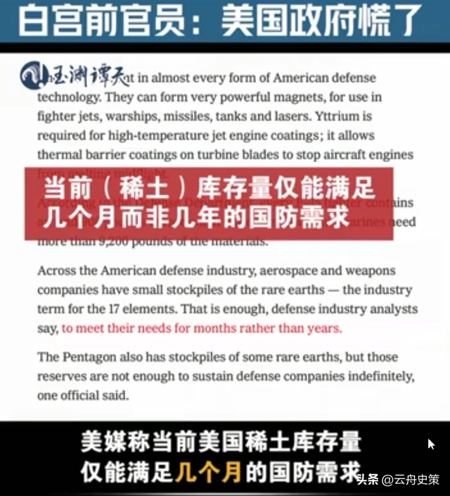 最讽刺的是,美国军工企业仓库里堆着土原料,可就是找不到会提炼的技术公司,媒体预测他们的材料只够用几个月。