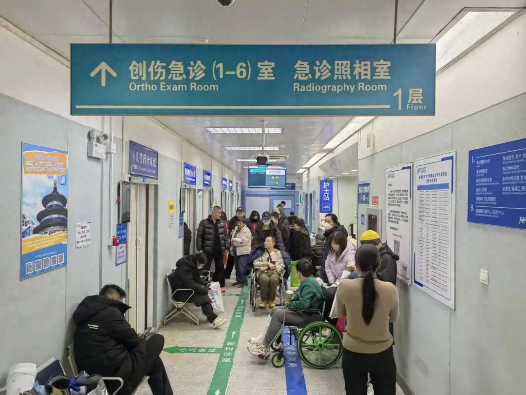 北京积水潭医院急诊,患者在诊室外候诊。北京积水潭医院