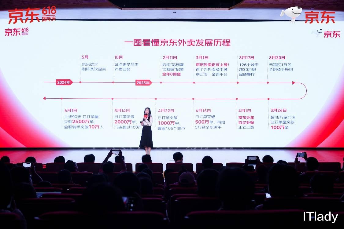 第三,即时零售爆发,京东外卖日订单量突破2500万单、品质餐饮门店入驻超过150万家。京东七鲜线上订单同比增长超150%,京东七鲜自有品牌商品销售同比增长340%,近期推出的“6.18L皮尔森原浆啤酒”和与龙虎联名的“风油爆浆软糖”上市即爆火出圈。
