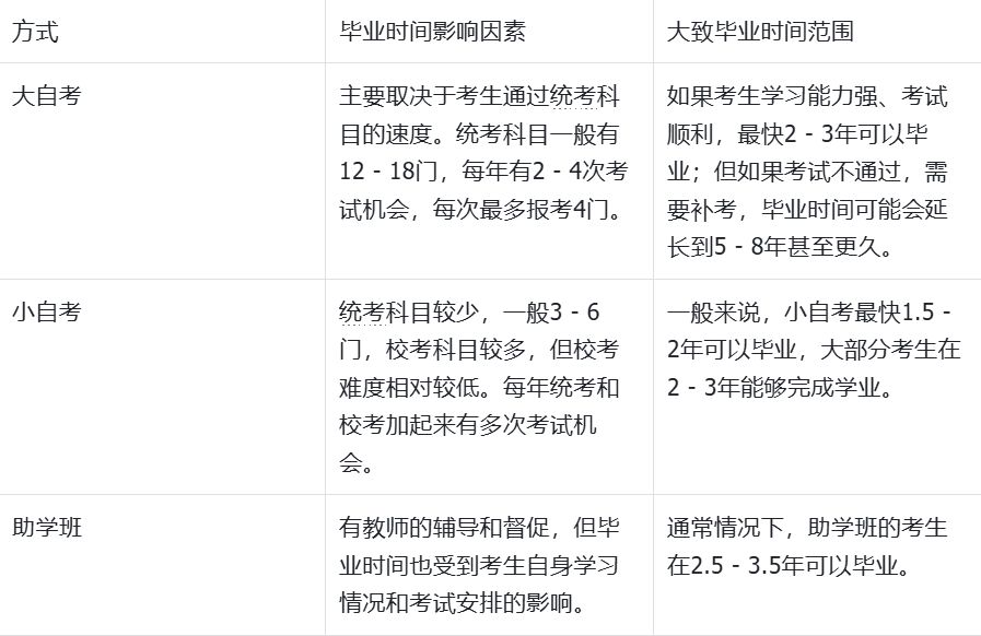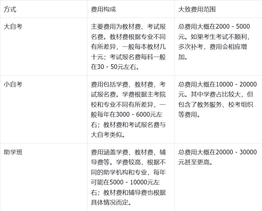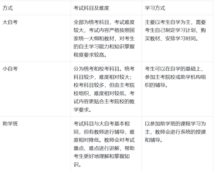 在学历提升的道路上,大自考、小自考和助学班是考生们常听说的三种方式,但很多人对它们在费用、时间和难度上的区别并不清晰。这三种方式各有特点。大自考费用低但难度大、耗时长;小自考在费用上相对适中,难度较低且毕业时间更灵活;助学班则有专门的辅导,但费用较高。下面我们将通过详细的对比,为大家呈现这三者的费用、时间、难度三维对比情况,帮助考生做出更适合自己的选择。