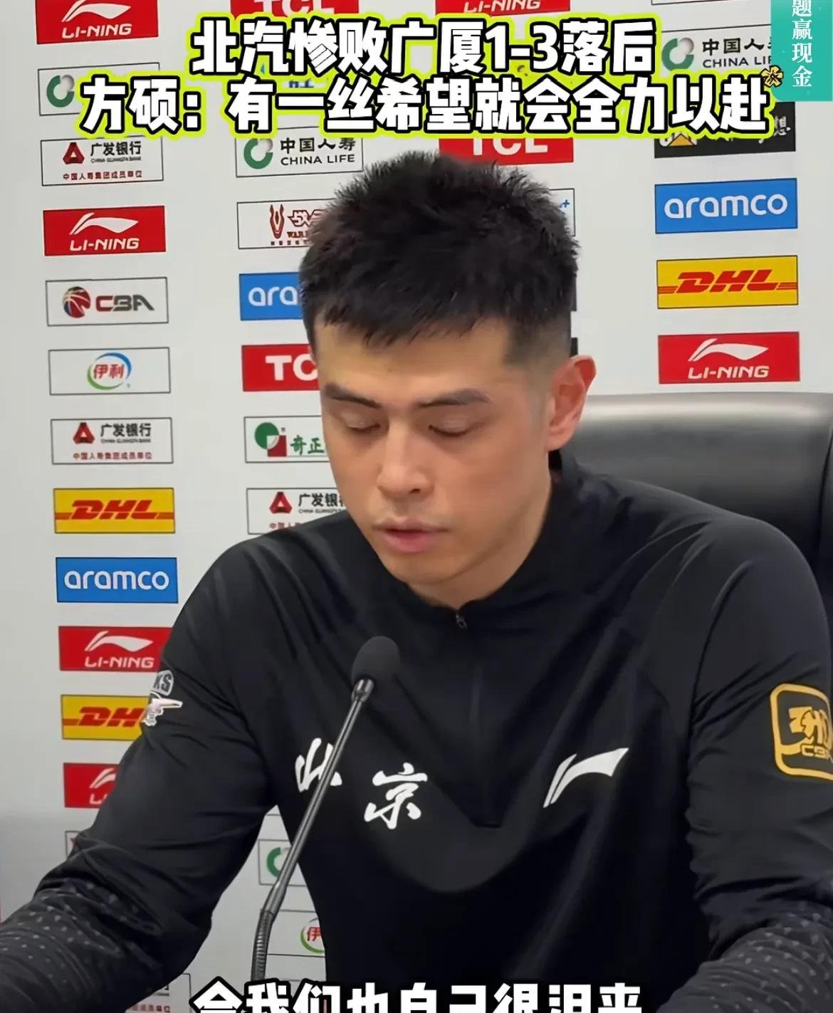 在媒体面前首先承认自己表现不足,在场上做的不够好。在北京男篮赛后发布会上是许利民主教练带着方硕参加的发布会。许利民主教练先发言承认了自己与广厦男篮之间的差距。他的大概意思就是对方始终是常规赛排名第一的球队,而北京男篮属于常规赛排名第三的球队,从比赛一开始就是以下打上,虽然第1场比赛赢了,但是接下来广厦男篮展现出了冠军潜质的实力基础。