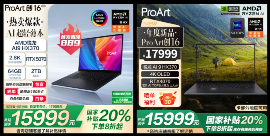 日前华硕ProArt创16专业创作本迎来了2025款的迭代升级,显卡从去年的最高RTX4070,升级到了最新的RTX5070,而且首付+国补双重优惠的到手价依旧是15999元,和去年的RTX4070版相同,可谓加量不加价。