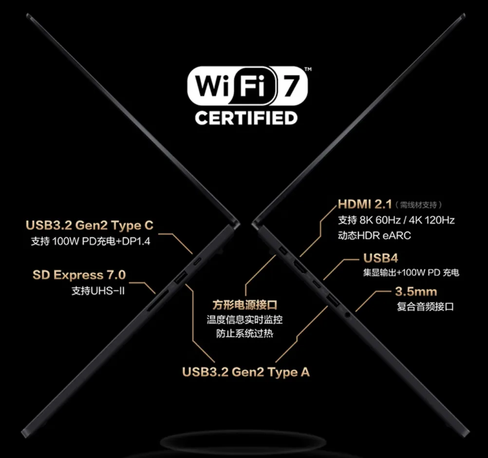 接口方面,创16配备SD7.0超高速读卡器,2个USB-A3.2 Gen2,全功能USB4,全功能USB-C3.2 Gen2,HDMI2.1、音频接口和电源插孔。