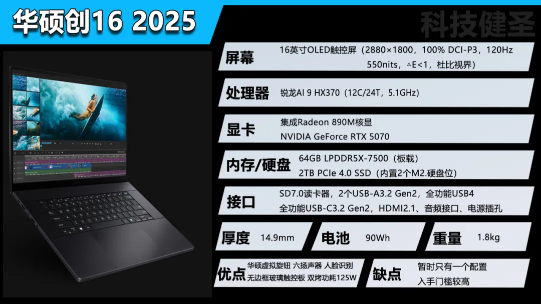 总的来说,华硕ProArt创16系列一直都是非常经典的设计本,全新的2025款升级了显卡,屏幕刷新率更高,关键是首发国补价依旧保持15999元不变,这些都足以弥补其刷新率降低的遗憾了。2.8K OLED触控屏幕,华硕虚拟旋钮,双硬盘位,面对成吨的原始视频和渲染特效也没有任何压力,值得从事专业设计和创作的小伙伴们重点关注一下。如果你的预算有限,当前国补后9999元的RTX4060版的创16(32GB+1TB),其实也足够满足大多数创作者的使用需求,6000元的价差还是蛮香的。
