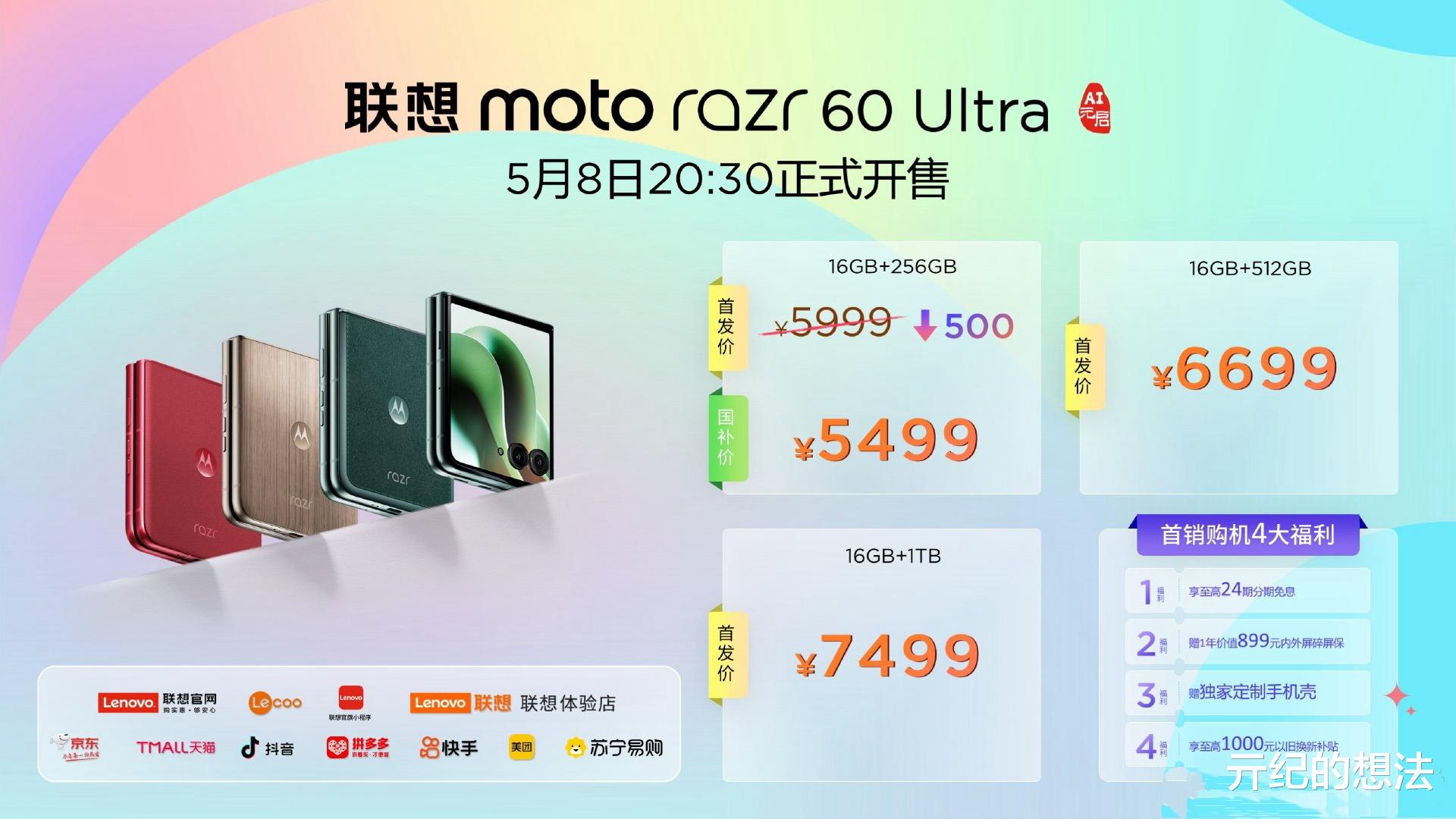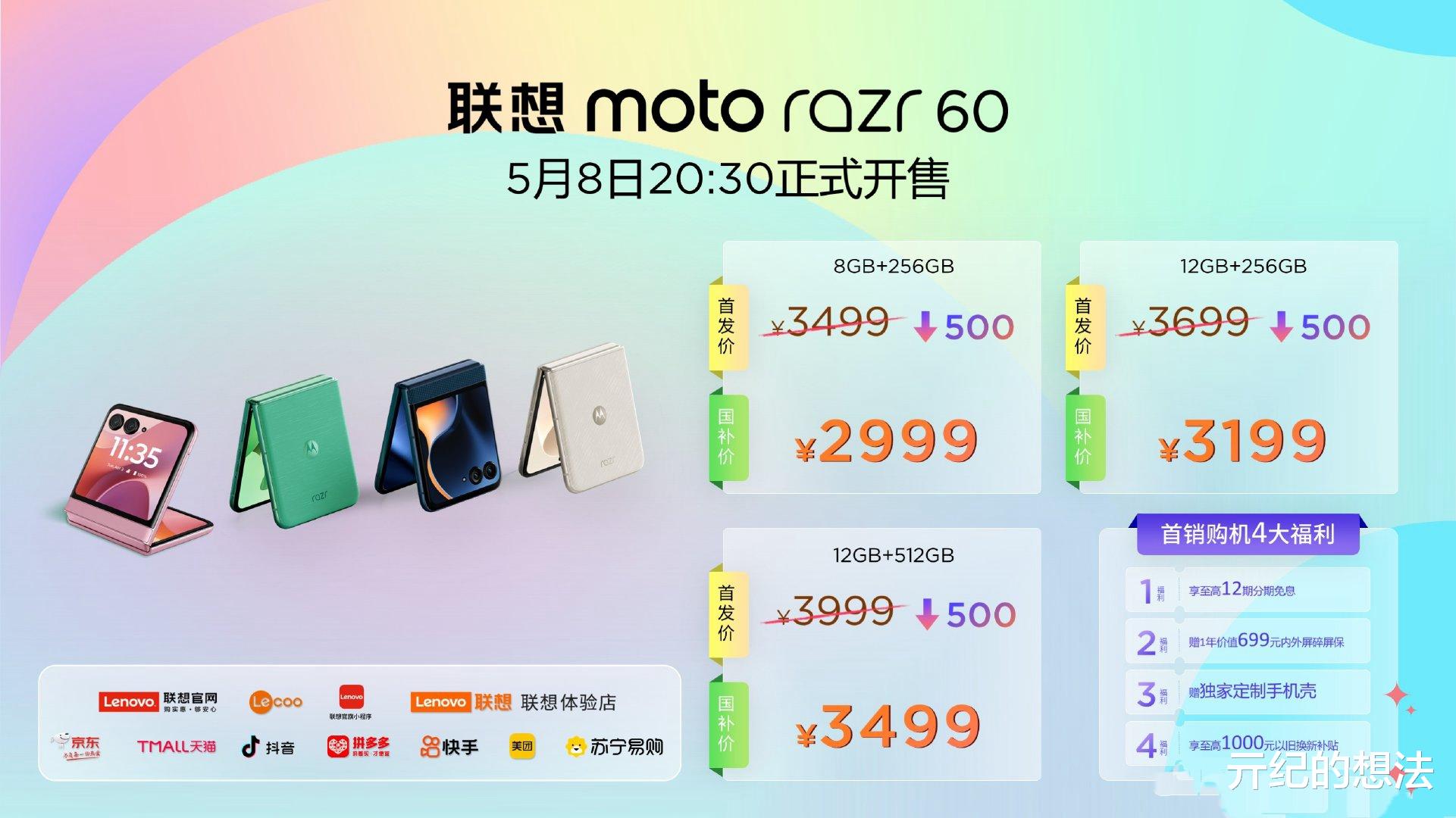 5月8日,moto razr 60系列正式发布:除了标准版和Ultra版以外,这次还新增了Pro版本,叠加国补优惠后,到手价仅为2999元。其中Ultra版搭载骁龙8Elite旗舰芯片,是首款搭载该芯片的小折叠屏手机,有需求的小伙伴可以了解一下。