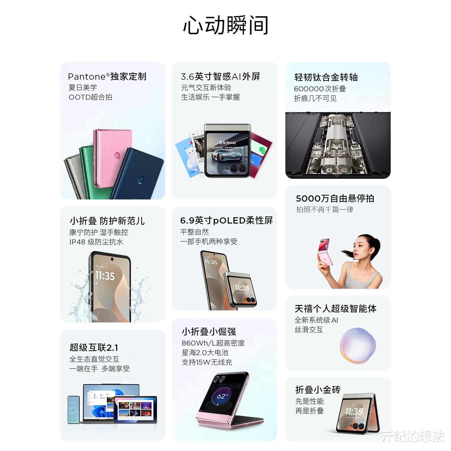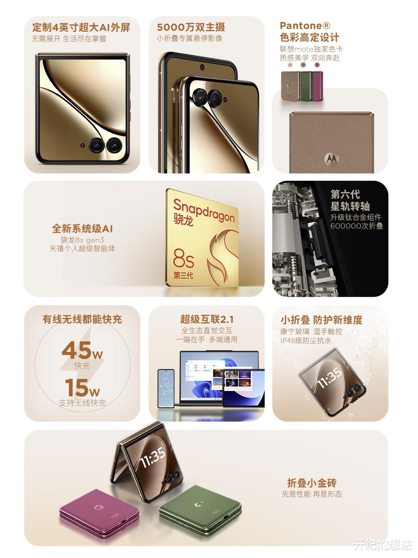 对于以上三款小折叠屏手机,亓纪的想法是这样的:标准版适合对性能没有需求的用户,不玩游戏的话日常使用还是不错的,2999元的价格还是不多见的。Pro版和Ultra仅相差了300元,个人更推荐Ultra版本,毕竟谁不喜欢大屏,大电池和旗舰芯片呀。或许是因为潘通的加持,今年的配色依旧很好看,包括价格最低的标准版。