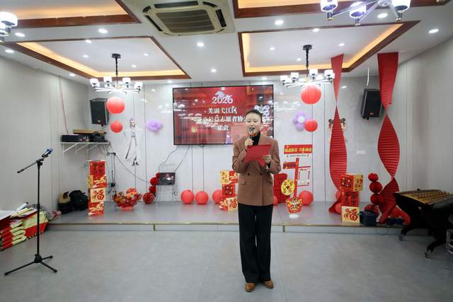岁序更迭,华章日新。2026年2月8日下午,安徽省芜湖市弋江区处处洋溢着新春将至的喜庆氛围,而在该区爱心公益志愿者协会的年会现场,一股更为温暖、磅礴的暖流正澎湃激荡。“同心筑梦,马年启航”,芜湖弋江区爱心公益志愿者协会2026马年年会隆重举行。来自社会各界的嘉宾、爱心单位代表与志愿者近百名家人欢聚一堂,共同回顾公益足迹,表彰奉献典范,展望爱心蓝图,以一场简约而隆重、温馨而激昂的聚会,奏响了新一年公益征程的序曲。