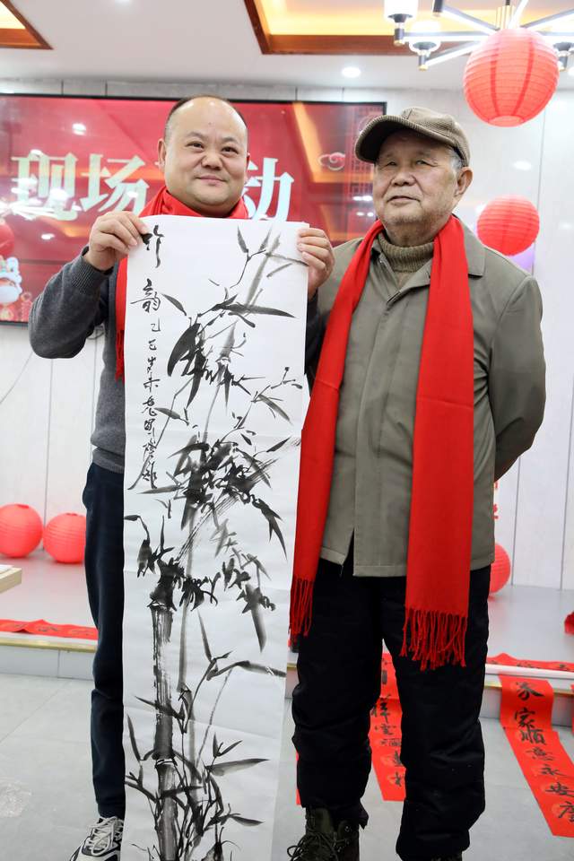 协会还特邀请书法家陶绍平老师和画家邱隆炬老师莅临现场,书写新春对联与画竹,两位艺术家的即兴创作,将中国传统文化的深厚底蕴与新时代志愿精神完美融合,为年会增添了浓厚的艺术气息与人文温度,引得现场嘉宾纷纷驻足欣赏,赞叹不已。
