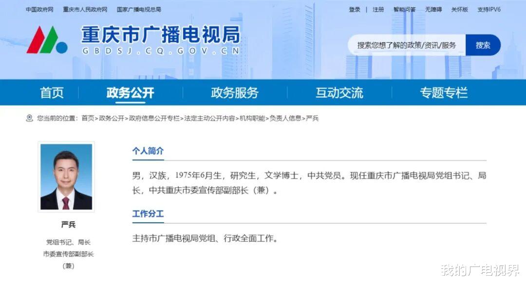 上述消息显示,重庆市广电局党组书记、局长,市委宣传部副部长严兵已兼任重庆广播电视集团(总台)党委书记、台长。