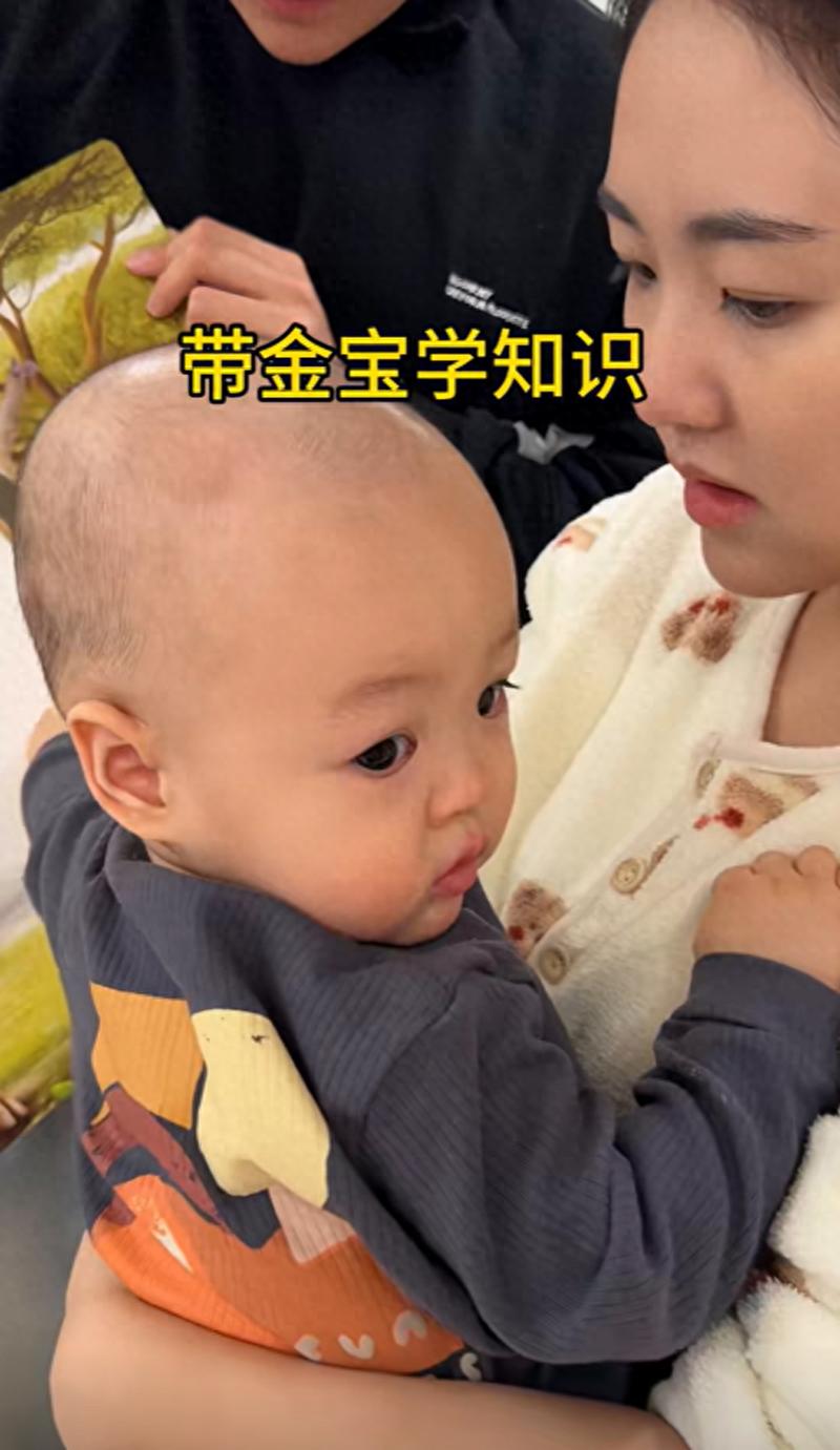 作为一个年轻的妈妈,王逸宸也给儿子准备启蒙了。她还特意买来了书给儿子看,一边让儿子触摸,一边教他读。