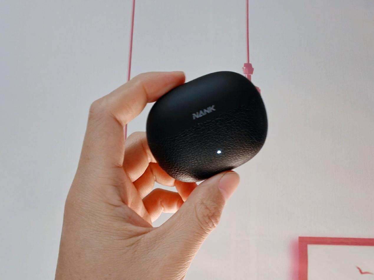 打开盒子,首先看到的是一个椭圆形充电仓。和我使用过的很多其他蓝牙耳机的充电仓不同的是南卡Clip Super的充电仓表面采用了类似拼接工艺,底部有着皮质般的纹理,盖子则是哑光磨砂工艺,造型美观的同时也不易沾染指纹。
