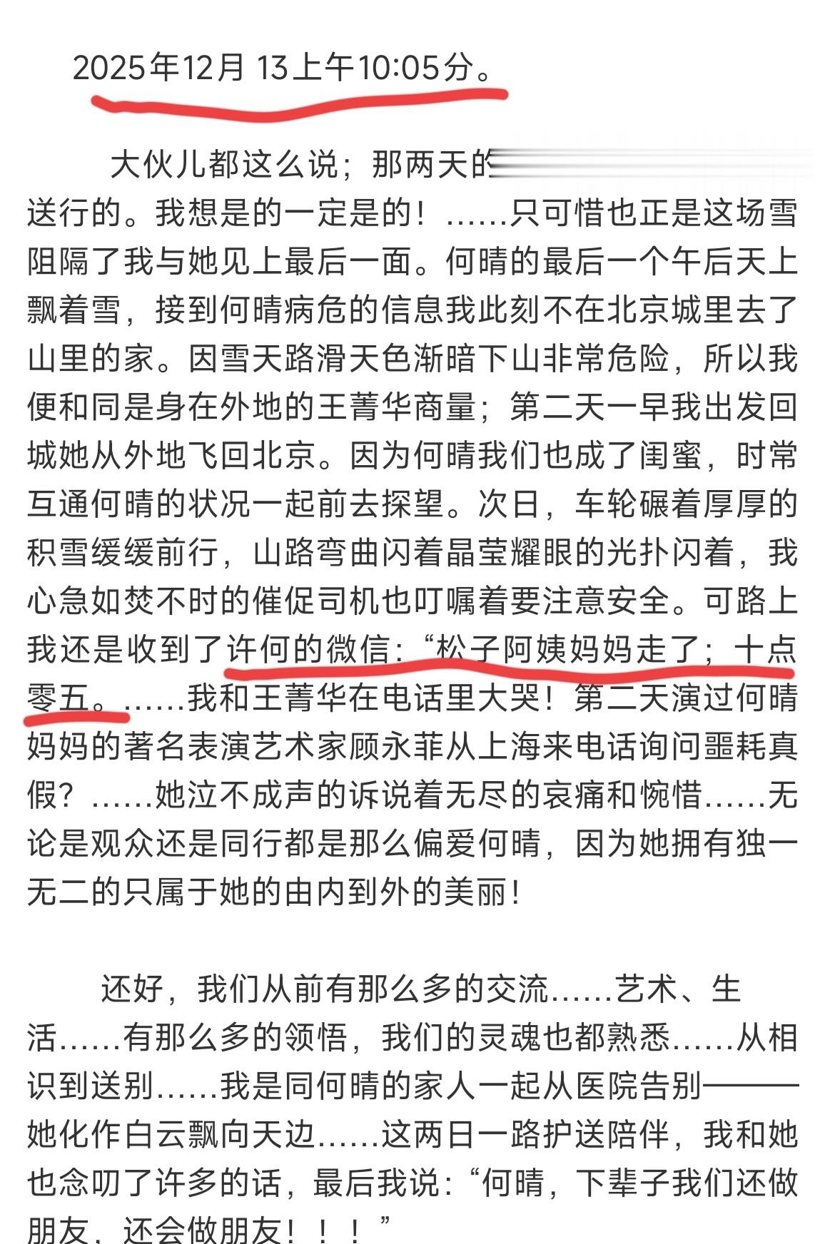徐松 子的悼文里写,何晴 临终前只能捏捏许何 的手腕,那一下轻得像片叶子,可许何懂,妈妈 是说“我走了,你要好好的”。许何这十年,把妈妈的每一口药、每一次疼,都刻在骨头上,他不是“懂事”,是把妈妈的命,当成了自己的命