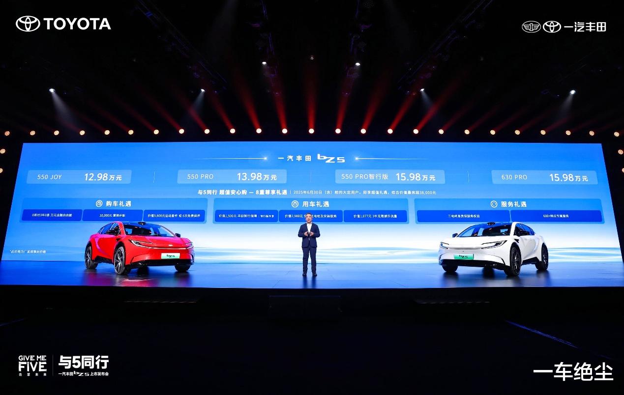 6月10日,万众期待的“丰田超感时空舱”全新bZ5正式上市;新车首推550 JOY版、550 PRO版、550 PRO智行版、630 PRO版共计4个版本,官方售价分别为12.98万元、13.98万元、15.98万元、15.98万元;并提供综合价值最高达3.8万元的8重大礼;上市至今,订单火爆,展露了爆款的潜质。