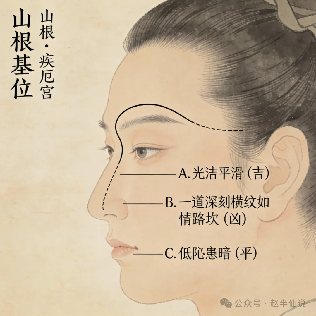 要是山根有道明显的横纹(这叫 “情路坎”):一辈子情路就爱出岔子,丙午年这火一烧,更容易碰着激烈的感情冲突,或者没头没脑的变故。