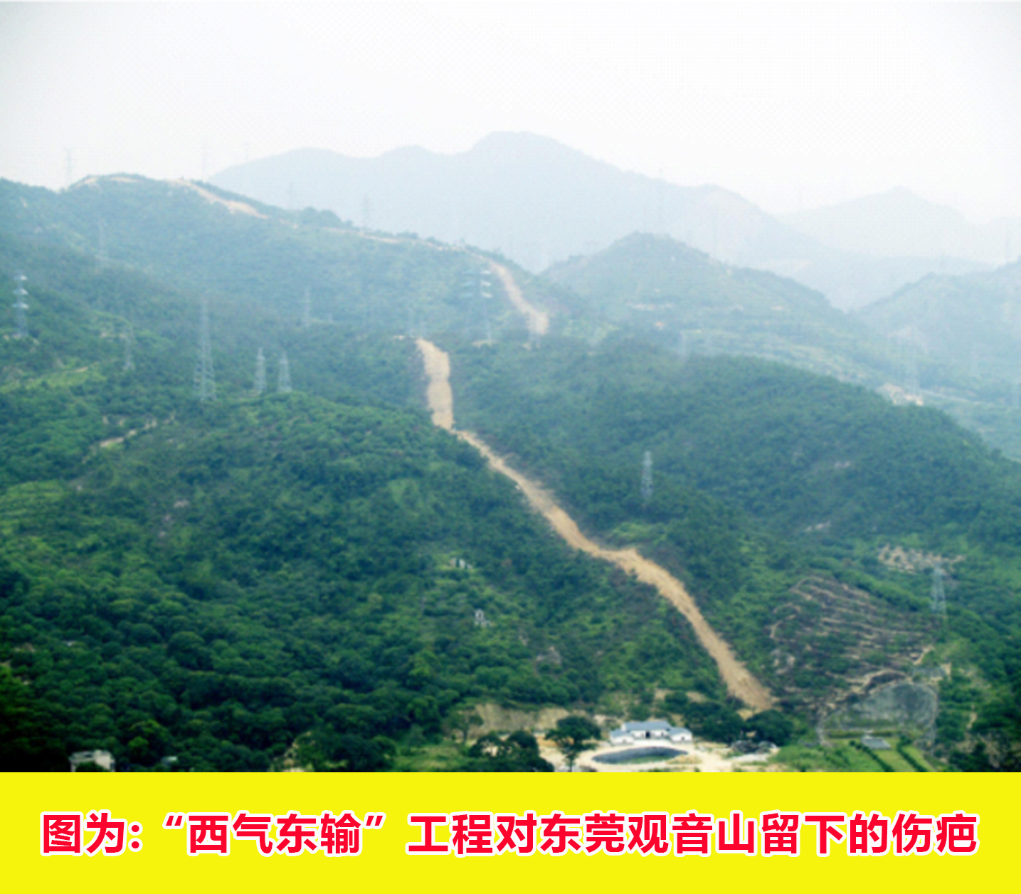 更严重的是“西气东输”管道项目。2010至2012年,中国石油天然气股份有限公司实施该项目,以大开挖方式穿越公园三四公里,自认占用林地达180亩。按照规定,此类项目必须先征得公园管理方同意,并报国家林业局审批。但经政府信息公开查询,该项目并未办理任何林地占用手续。