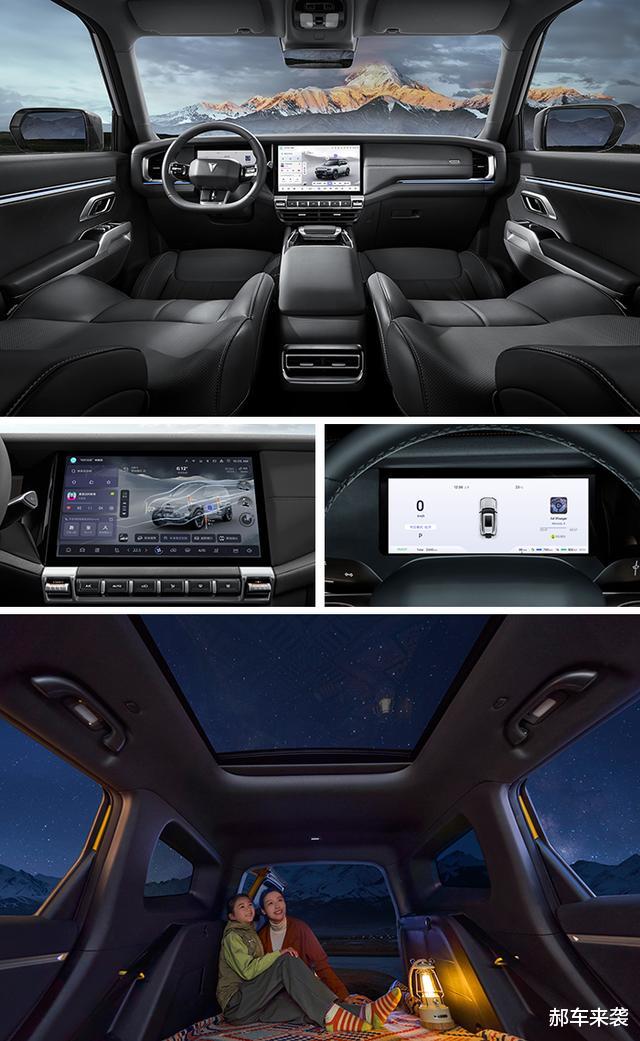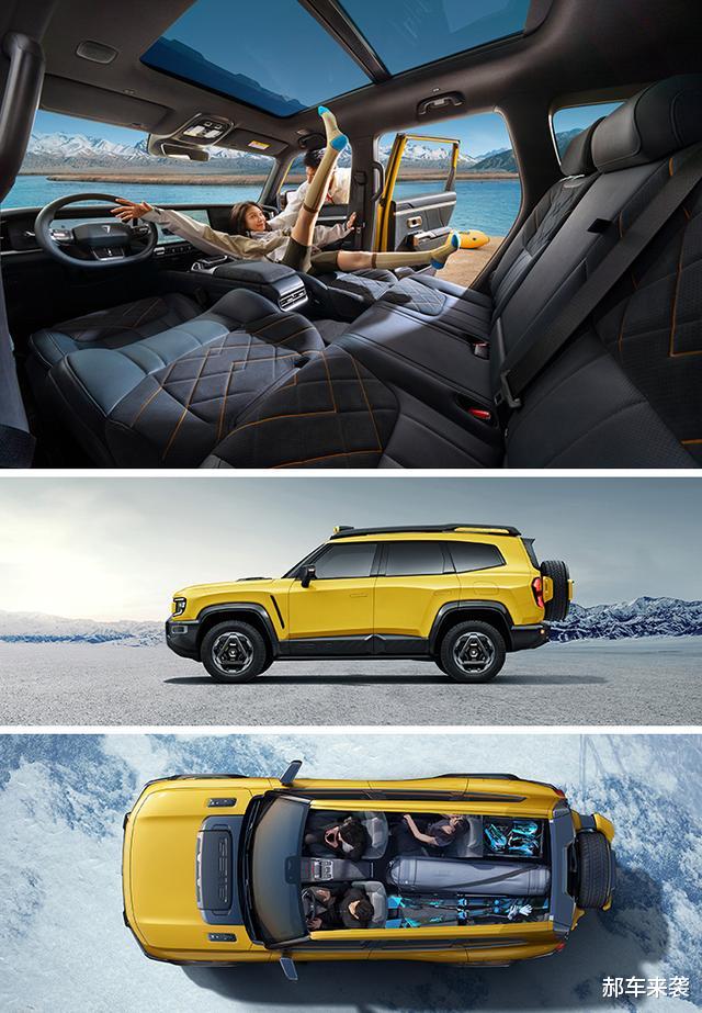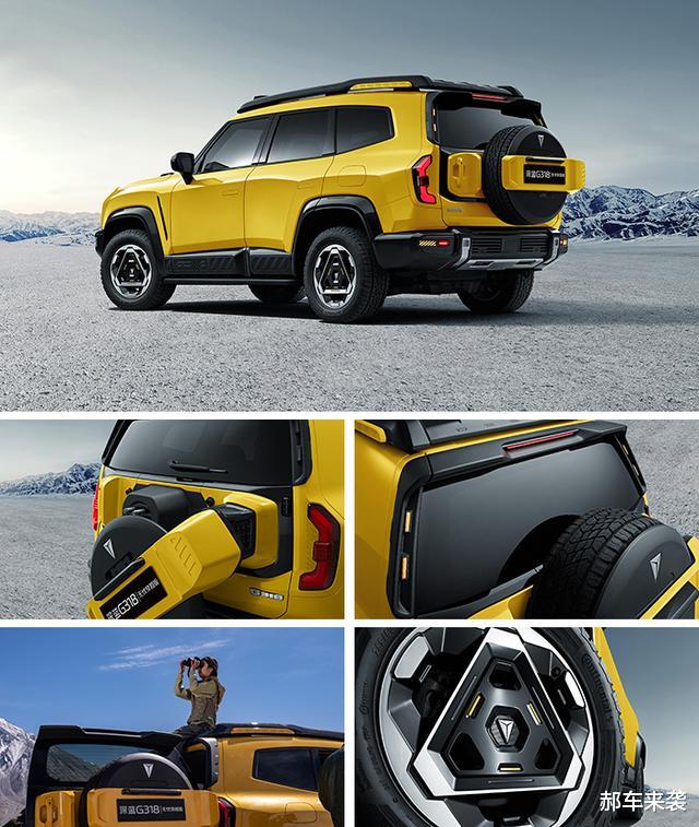 尾部最大的特点是独创备胎罩设计与全方位覆盖的“七大灯”组合,视觉上更符合其硬核SUV定位,同时还能有效警示后车保持安全距离。与此同时,环绕式尾翼和加宽的行李架也堪称是个加分项,隐藏式拖车钩自然也是必不可少的,同时新车将提供五种车身颜色可选。总而言之,郝哥感觉G318无忧穿越版可以看作是普通G318的越野改装版。