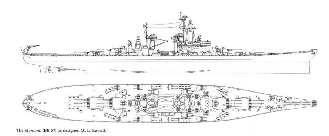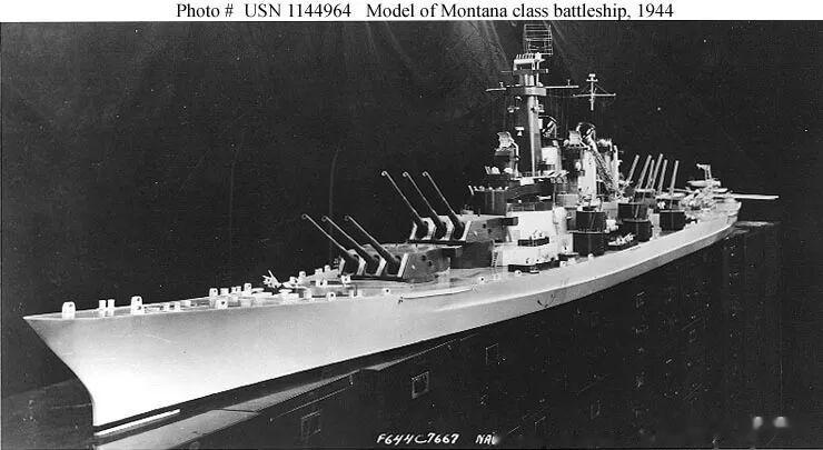 蒙大拿级战列舰,是依据1940年"两洋海军"造舰计划授权,并在1941财年获得拨款,是美国海军订购的最后一级战列舰。其设计标准排水量达60500吨,比之前的衣阿华级大了近三分之一。蒙大拿级计划搭载十二门16英寸/50倍径主炮,比前级多三门,其防护也大大增强。