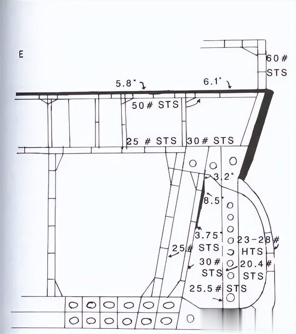 那么,如果蒙大拿级不是为对抗大和级而设计,为何如此庞大?这主要是因为该级舰的设计要求是能够抵御其自身火炮的火力。16英寸/50倍径火炮与2700磅"超重弹"结合,本可成为有史以来服役的最优秀战列舰主炮。在远距离上,其穿透力几乎与日本更大的460mm炮弹相当。正是由于这种相似性,蒙大拿级能如此有效地防御大和级强大的460mm火炮,实际上是一个幸运的巧合。