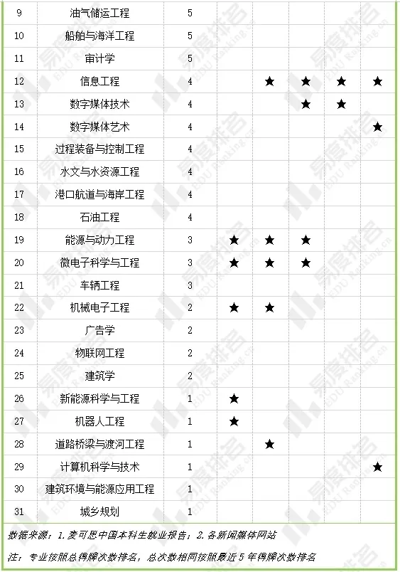 需注意:专业累计得牌次数只代表历年总体情况,若用于志愿填报时做参考需重点关注近年的得牌情况。