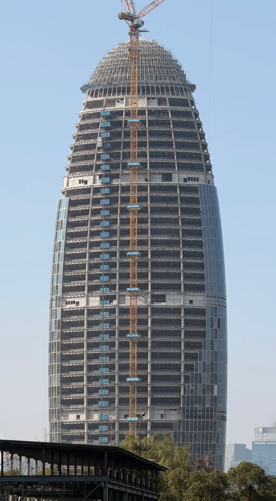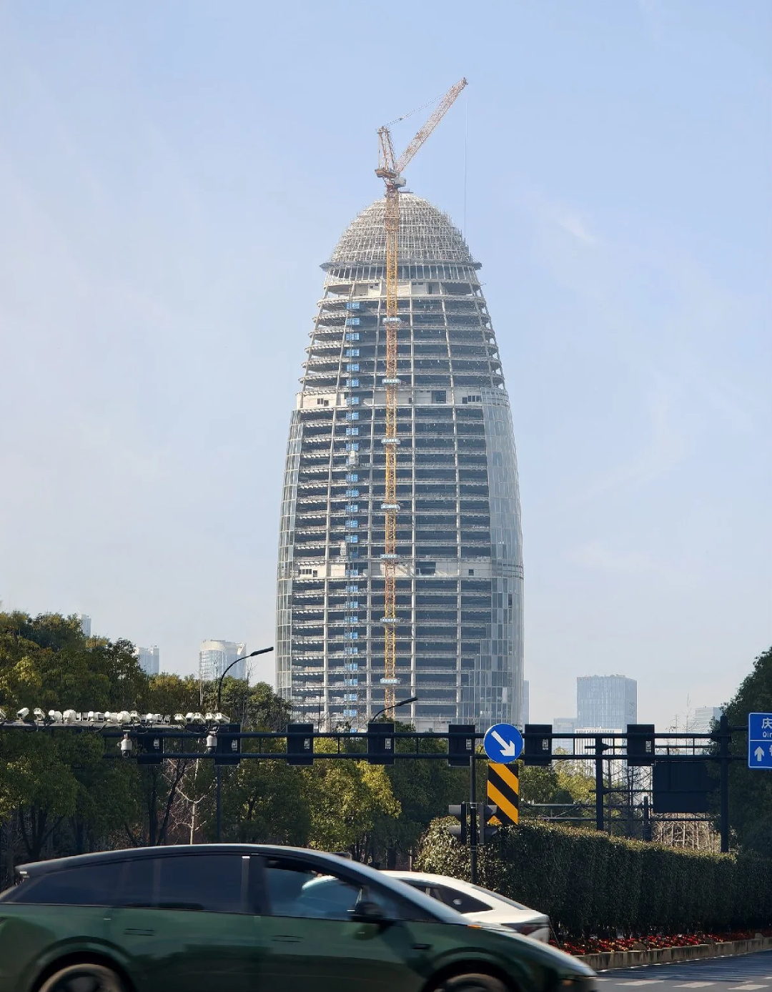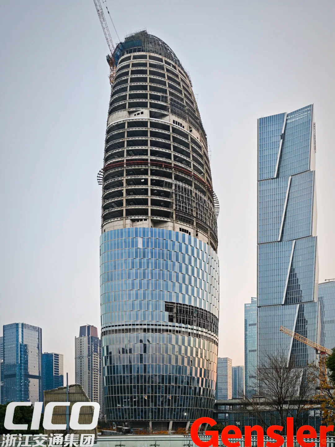 浙江交通集团金融中心(又称“玉贝”大楼)近日迎来新进展,幕墙已完成过半施工,预计2026年底正式亮相。