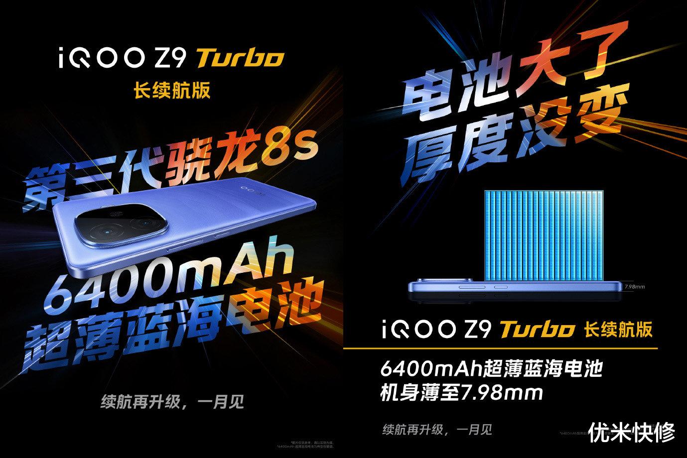 12 月 26 日消息,iQOO 手机官宣,iQOO Z9 Turbo 长续航版将搭载 6400mAh 超薄蓝海电池,并且还能保持机身厚度,整机轻至 196g。官方还表示,它的视频播放时长可达 22.7 小时,带来了超长的续航表现。