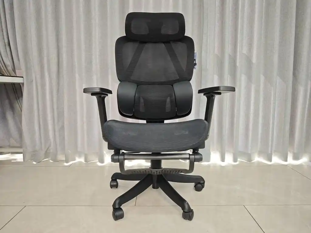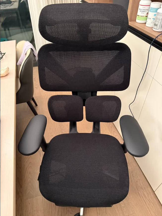 支撑性:科技网布透气好,久坐不闷热,坐感软硬适中,支撑性充足,头枕对颈部支撑到位,能满足长时间办公需求;缺点是网布表面偏粗糙,长时间久坐皮肤敏感的人可能会有轻微不适。