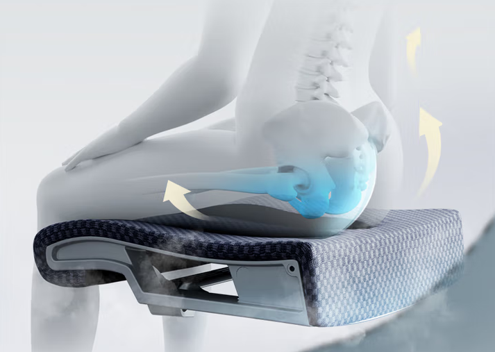 座垫采用六向回弹云感设计,软硬适中,回弹均匀,坐上去既有足够的支撑力,又不会觉得硌屁股,能精准托住臀部坐骨,减少大腿和臀部的久坐负荷,哪怕每天坐10小时,也不会出现屁股发麻、大腿酸胀的情况。