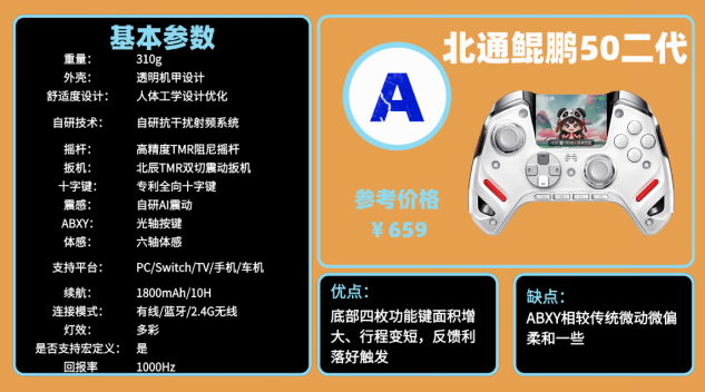 游戏手柄推荐2026精品4、北 通鲲 鹏50二代游戏手柄