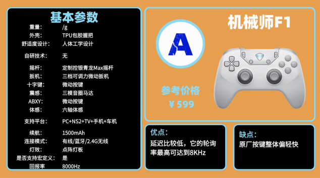 游戏手柄推荐2026精品10、机 械师F 1游戏手柄