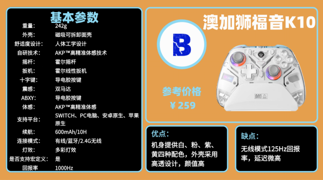 游戏手柄推荐2026精品3、澳 加狮福 音K10游戏手柄