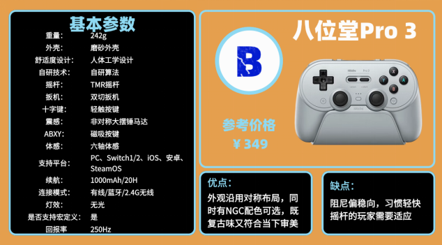 游戏手柄推荐2026精品8、八 位堂P ro 3游戏手柄